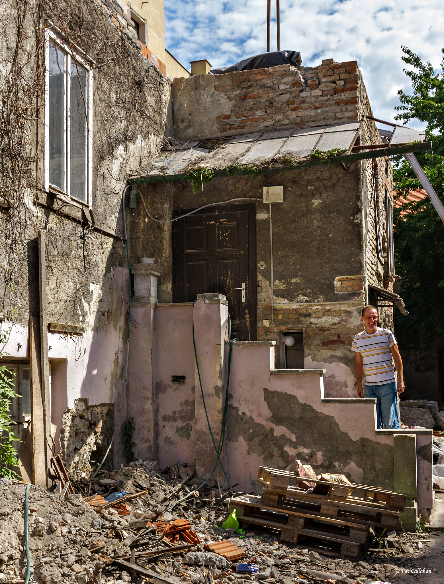 This week we visited our friend, Igor, at his music shop just around the corner from the Albrecht home. I love this part of old town: derelict buildings, broken windows, crumbling plaster, caved red-tiled roofs.