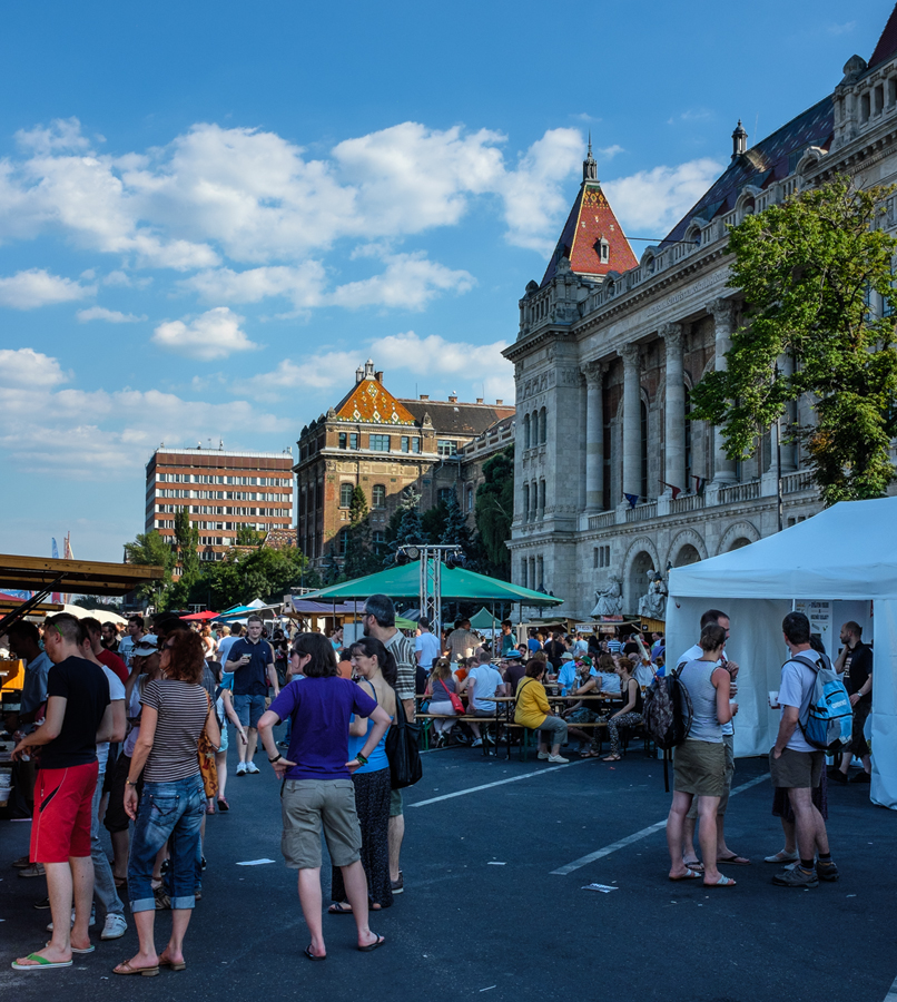 Last weekend, we visited a beer festival with Hungarian friends. A cluster of brightly colored beer tents lined the Danube wedged between the river and the technical university of Budapest. This district lies a few steps south of the edges of the tourist zone. Here we found free entrance, plastic cups, and cheap beer. While tourists roam nearby, they stay just out of reach from this less beaten path.