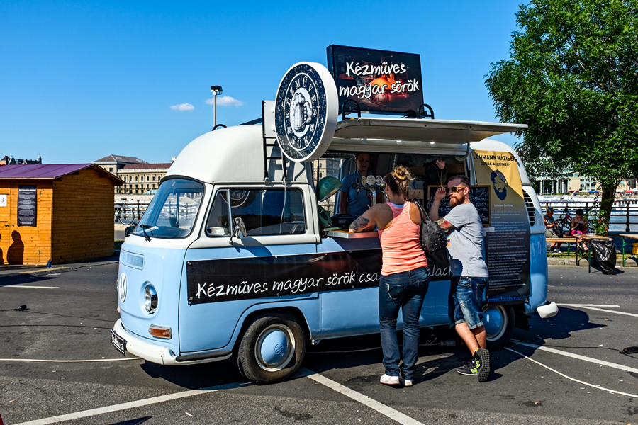 Pat conversed with a man selling beer from his pale blue, restored Volkswagen van. He proudly boasted that Hungary was now entering the “beer revolution”. “The Czechs and Slovaks have a head start. But Hungary is getting serious about its beer now!” Last year, we talked to a man in Bratislava who proclaimed, “The Germans have their beer festivals. But here in Bratislava we are celebrating a beer revolution!”