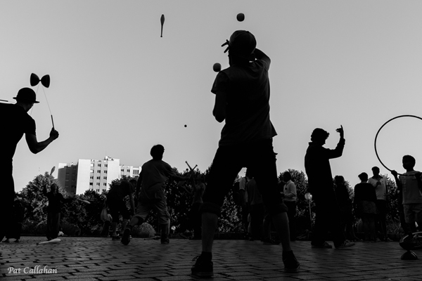 One Saturday evening, Pat headed up to Belleville as always right after dinner. The juggler was putting on a show for the neighborhood. Afterwards, young jugglers took to the stage under his tutelage. The amphitheater transformed into a juggler’s university. Pat captured the photo at the top of this blog – one of my all time favorite shots. We laughed about the craziness of life; the fact that we now live where the jugglers live. I have grown inordinately fond of jugglers.