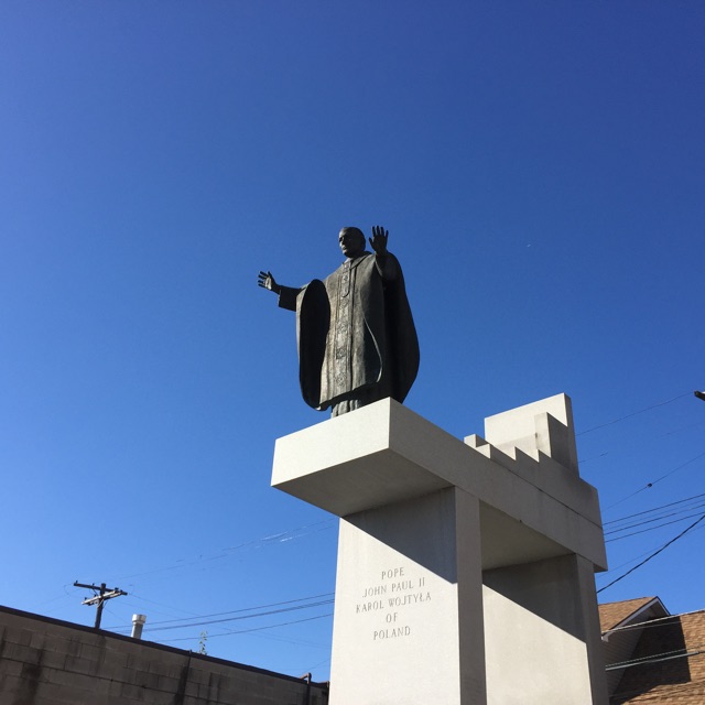 Before we left to head north to Traverse City, we sought out the Pope Park. This pope is, of course, John Paul the Second, THE pope for the Central Europe Catholic community. The site commemorated his visit to Hamtramck. Flyers on every shop window advertised a fund-raiser supper to support the park’s renovation–which had tipped me off to its existence.