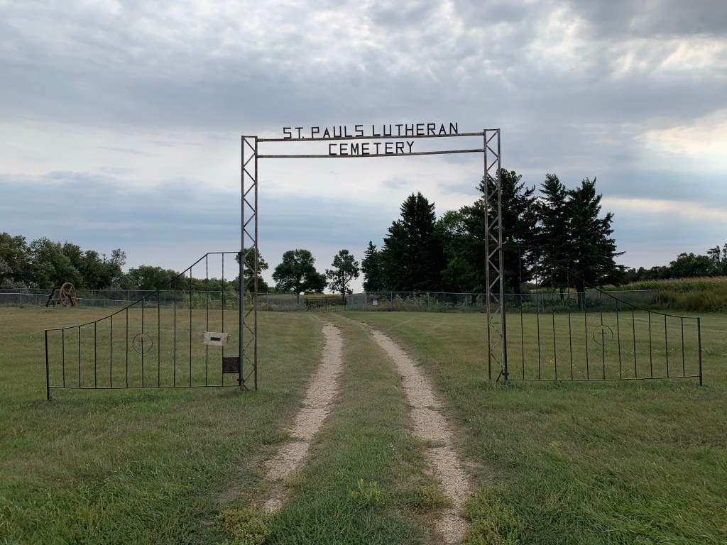 A few miles further, we stumbled upon a Lutheran cemetery and again, we checked the name on every stone. Confident that she wasn’t in either of these cemeteries, we decided to return to town for one final look before heading onto Bismarck for the night.