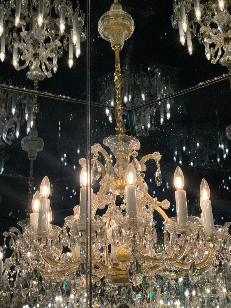 It started last week when I visited an infinity mirror exhibit called The Chandelier of Grief at the Tate Modern. In a darkened room, mirrors reflected spinning chandeliers creating the illusion of infinity. Per Kusama, this particular infinity mirror is a reminder that beauty can still exist during times of great sadness—pin pricks of light echoing against the blackness of grief.