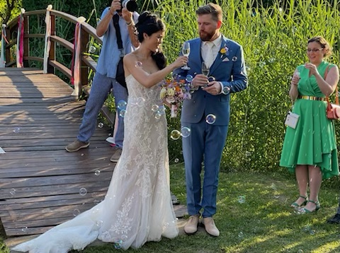 Half of the sand, the officiant explained, had come from the Danube banks of the groom’s home country of Hungary and the other half from the beaches of the bride’s home country of Singapore. The service itself was on the banks of a small river in rural Hungary an hour by train and foot from Budapest.