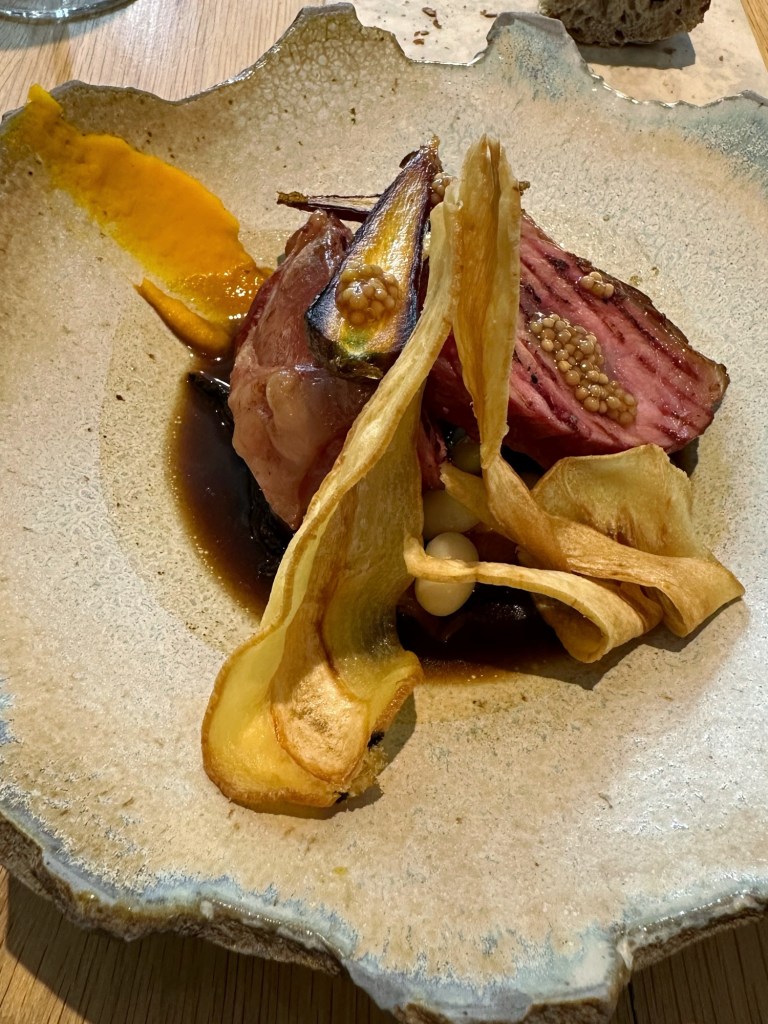 Chambolle-Musigny: Holy-cow lunch with holy-cow wine. We walk in at 1:15 and snag the last table. The next two hours are pure magic. There are no prices on anything, and so we speculate how much this is going to cost; it’s not pretty. Turns out, the 3 course menu is an are-you-kidding-me bargain at 27 euro. As I pay, I apologize for our backpacks. The young waiter smiles and tells me it was no problem.