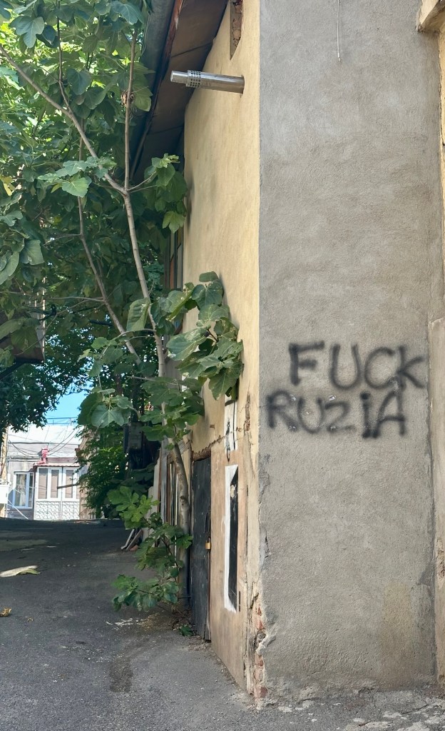 When I think back about Tbilisi, I may remember fat, green figs ripening on trees; wooden balconies decorated with elaborately carved lattice work that often dangled precariously; an abundance of cat and anti-Russian graffiti painted on doors and drab concrete walls; small Orthodox churches stuffed with gold icons, flickering candles, and fervently praying faithful.