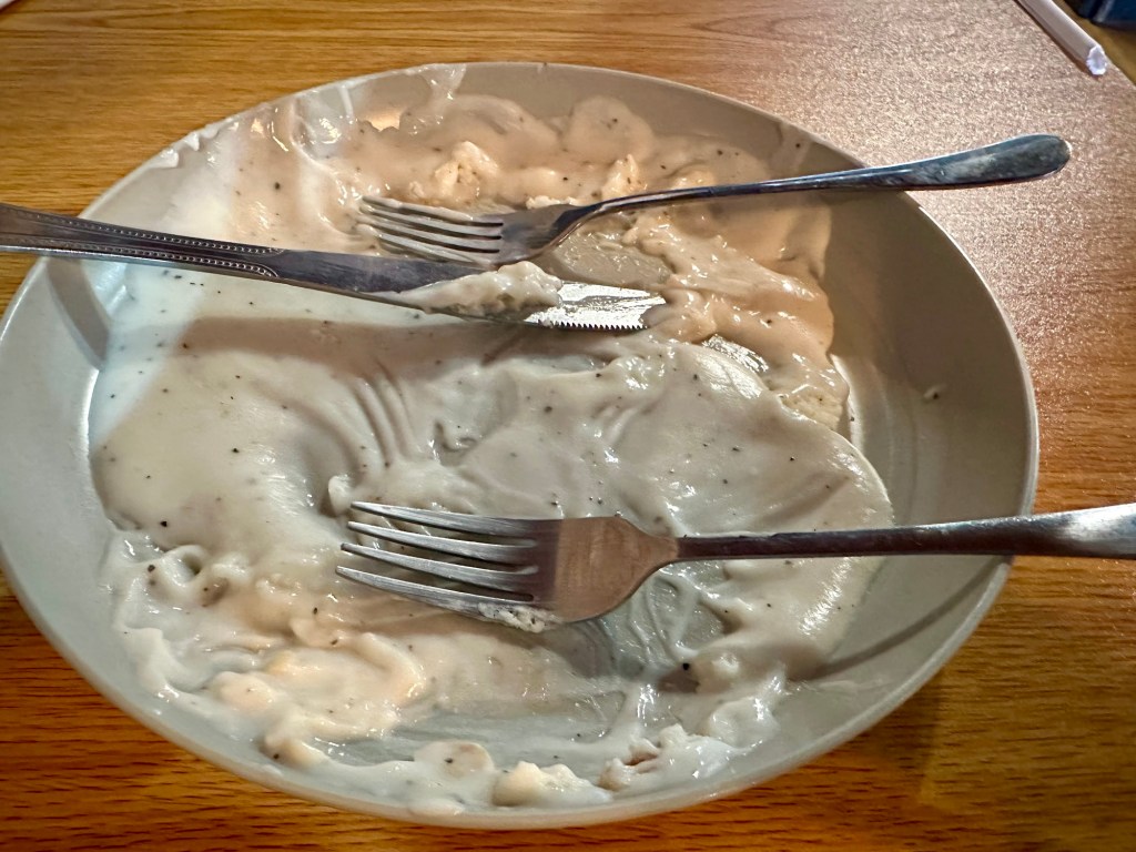 Remnants of biscuits and gravy