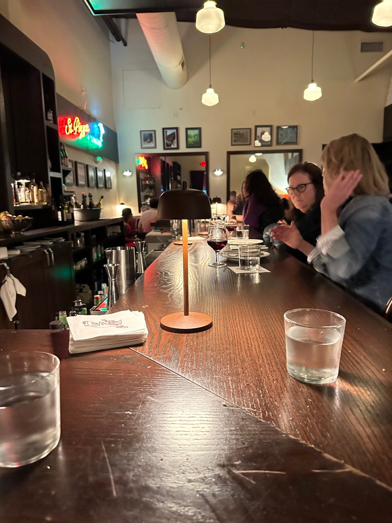 The first night everyone was friendly and the food was good. The second night, the hostess said, “Welcome back.” Friends stopped to greet other friends at nearby tables. Couples ordered the usual. It was a neighborhood vibe, and I loved it.