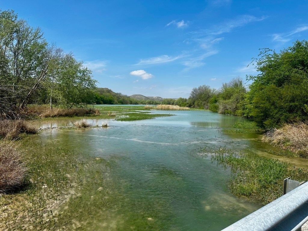 Within ten minutes we park near the river, walk the bridge, and explore the riverbanks with Pat periodically shouting out, “Watch out for rattlesnakes!” (Note to Pat: This is both harrowing and completely unnecessary. I’ve been scanning for rattlesnakes since we crossed into Texas.)