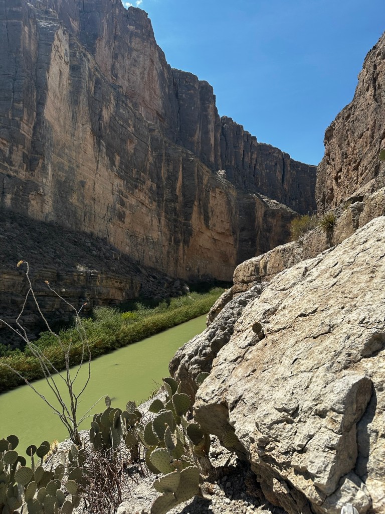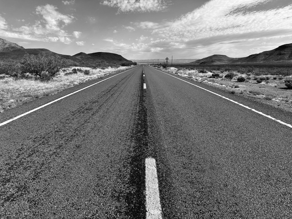 The landscape is vast with a near constant wind. It’s a place where dirt predominates and color is doled out frugally by way of scraggly shrubs and thorny bushes. My black shoes are now a pale shade of taupe. “I feel like Neil Armstrong,” I say to Pat as we approach Big Bend National Park. “Clearly this is the closest I’ll ever come to walking on the surface of the moon.” We drive thirty minutes before we pass another car.